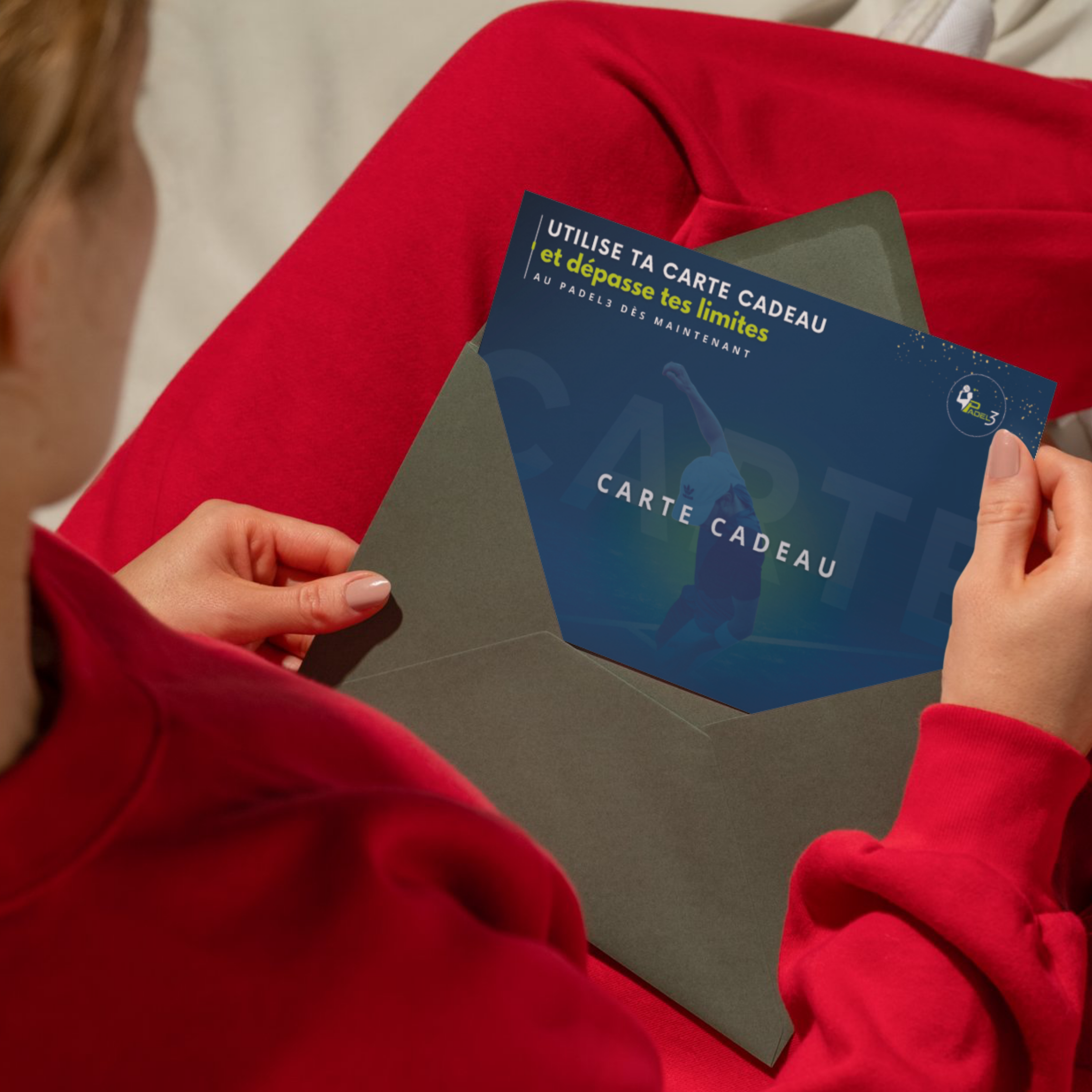 Un cadeau, une carte cadeau Vous ne pouvez pas vous tromper : c'est le cadeau idéal pour tout joueur de padel ! E-carte cadeau 25.00€N'attendez plus pour faire plaisir, c'est le cadeau parfait ! e-Carte cadeau 50.00€N'attendez plus pour faire plaisir, c'est le cadeau parfait ! E-Carte cadeau 100.00€N'attendez plus pour faire plaisir, c'est le cadeau parfait ! e-Carte cadeau Montant libreN'attendez plus pour faire plaisir, c'est le cadeau parfait ! Suivez l'actualité du Padel3 ! Email S'inscrire HORAIRES ACCUEIL: Du lundi au vendredi / 11h30 à 23h00Samedi / 10h00 à 21h00Dimanche / 10h00 à 14/00 HORAIRES HORS ACCUEIL: Du lundi au dimanche 24h/24 / 7j/7 2024 – MCCP COMMUNICATION ©TROYES, 11 RUE ANTOINE LUMIÈRE Facebook Youtube Instagram Linkedin CONTACT :padel3@padel3.fr